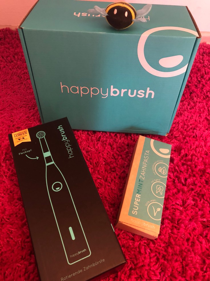 In meinem Testpaket war die schwarze Happy Brush rotierend und die Super Mint Zahnpaste enthalten. Kostenpunkt sind: 49,95 €