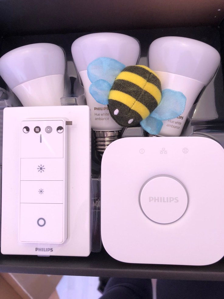 Heute möchte ich euch meine neuen Philips Hue White ambiance vorstellen. Im Testpaket enthalten waren drei Glühbirnen, ein Lichtschalter mit abnehmbarer Fernbedienung so wie eine Phillips Hue Bridge.